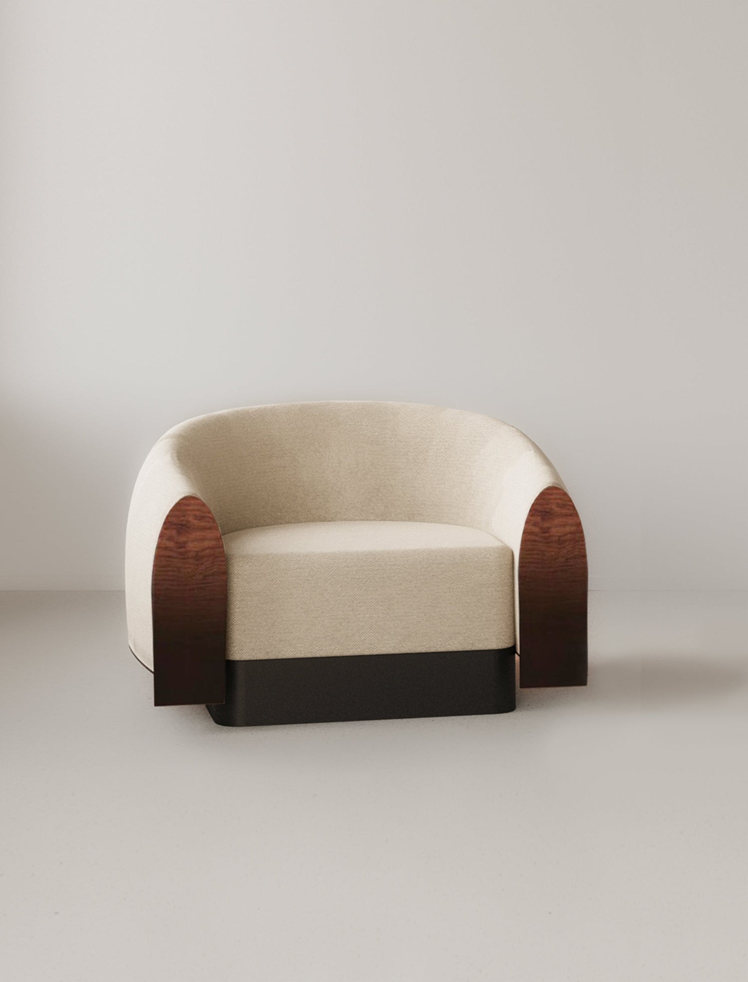The solidity and stability of the curved lines that organize this furniture are inspired by the ice architecture of the Eskimo people and the art deco style. The meeting of the concave backrest and the rectilinear block of the seat marks the balance between aesthetic value and comfort, creating what is essential in home furnishings: warmth.
