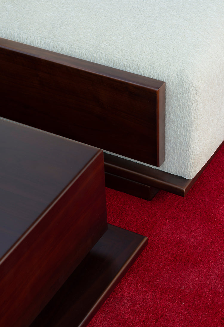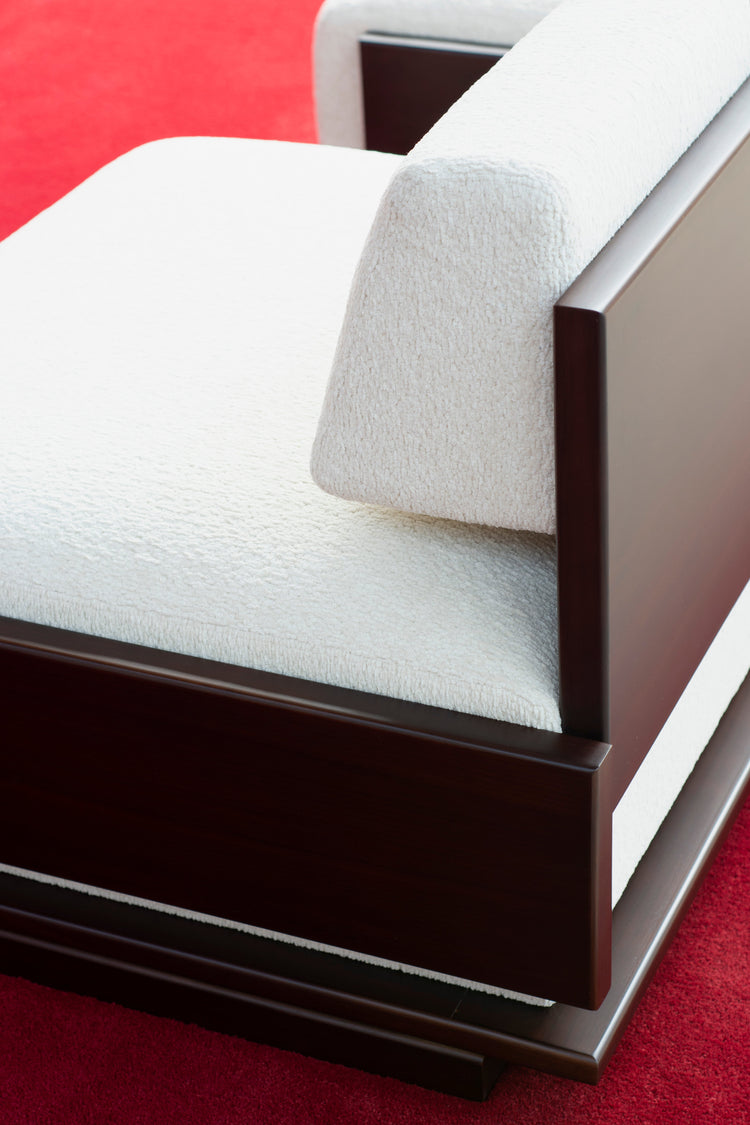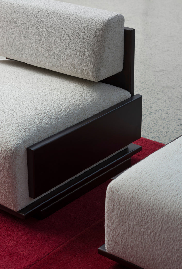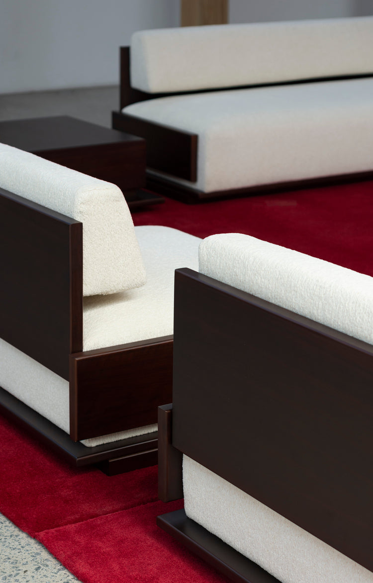 Deeply connected to Brazilian modernist furniture, this piece reaffirms the intersection of functionality and artistic creation. Its formal elegance stems from the contrast between the wooden surfaces, covered in natural veneer, and the upholstery, creating complementary spaces that integrate comfort and practicality.