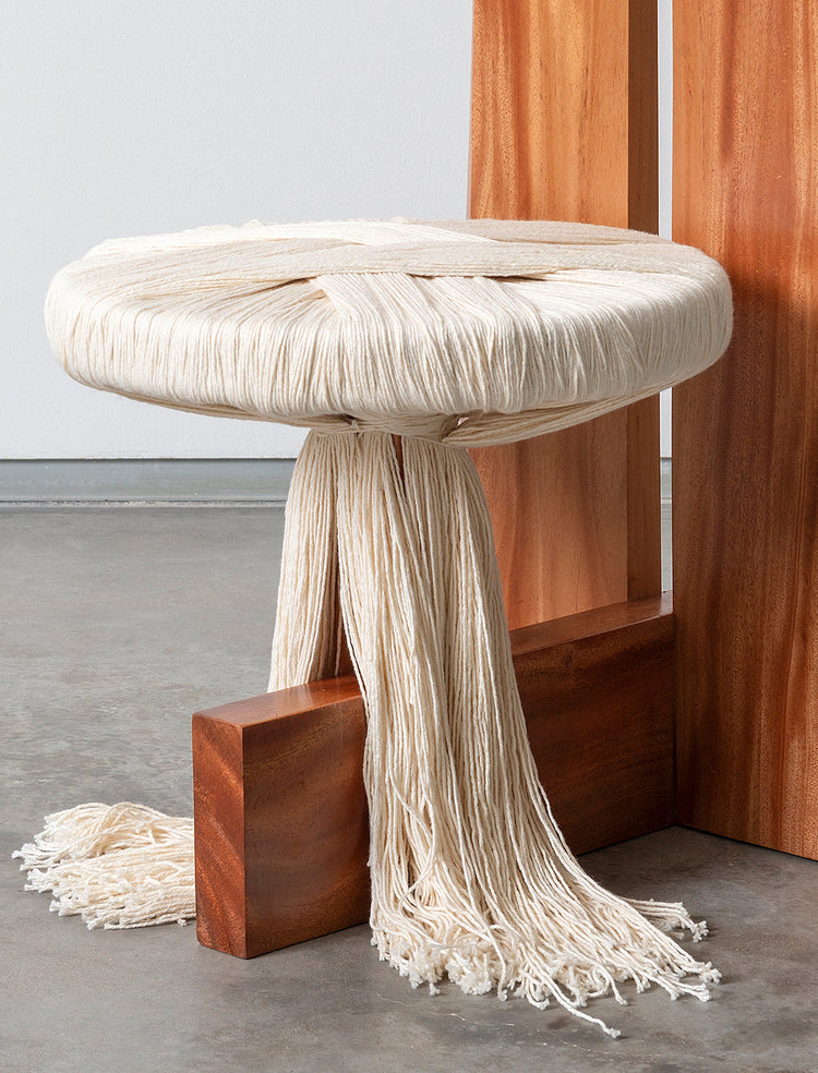 At the intersection of form and function, Mahog works on the frontiers of sculpture and designer furniture. The two large vertical volumes, connected only at the bottom, reveal a gap between the totemic aspect of these forms. By harnessing the characteristics of each material, such as the intriguing jute rope accent, handmade by the designers themselves and inspired by the artisanal work of indigenous Brazilian peoples, this piece of furniture...