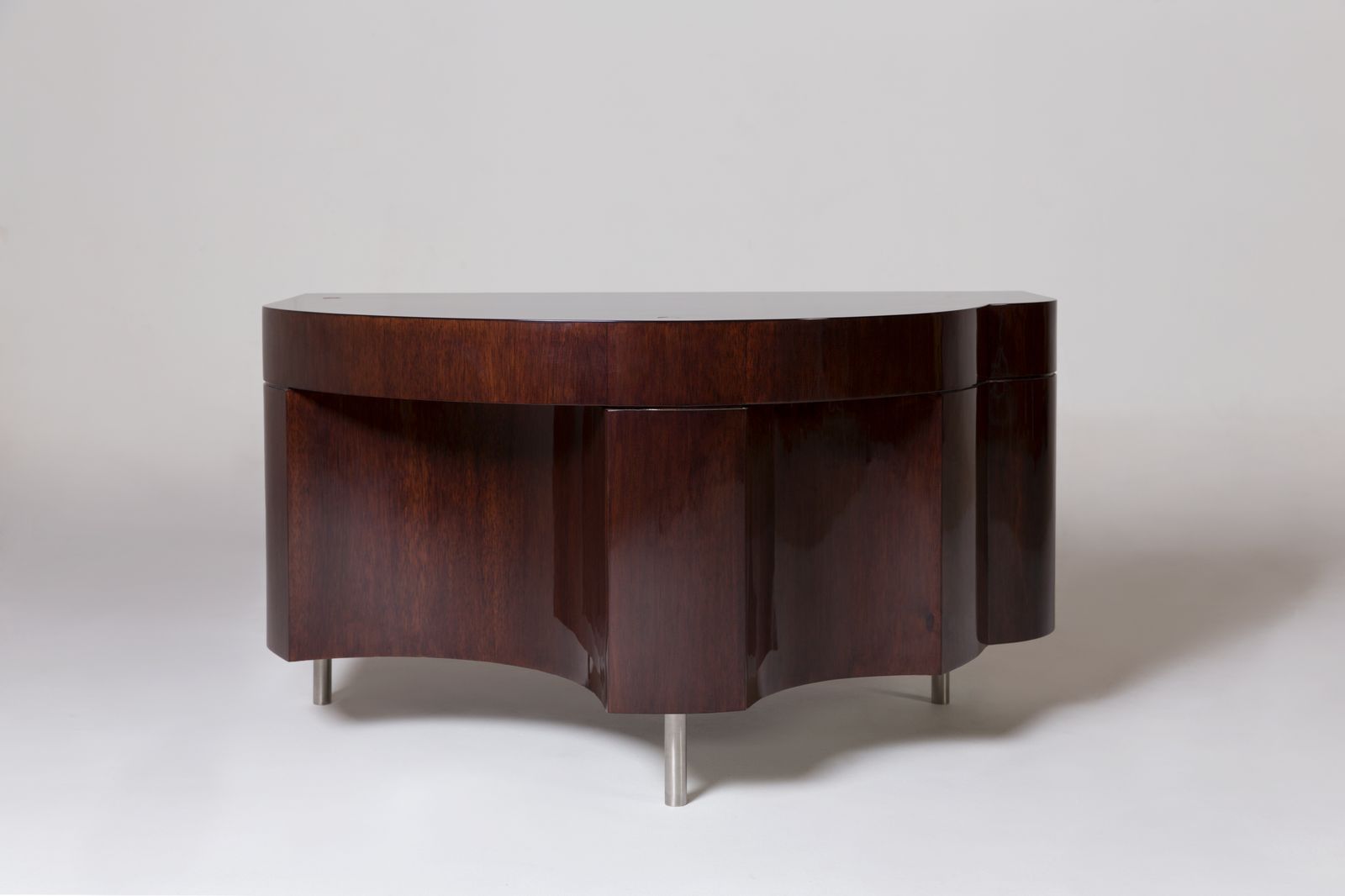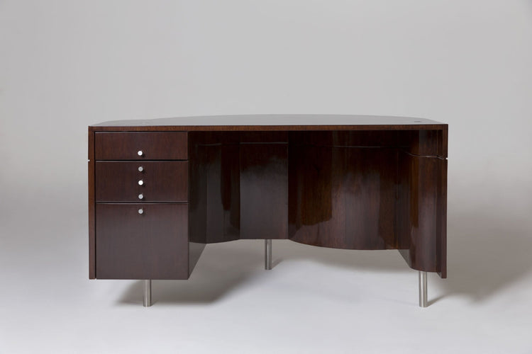 With references to functional furniture from the 1960s and 1970s, this table embodies the sinuosity that inspires its name, derived from the expression "Sea of Hills" that illustrates the Minas Gerais landscape. The sobriety of the wood and finishes, along with the rounded elements that surround and define the user, transform this piece into a synthesis of voluptuousness and rigidity of forms.